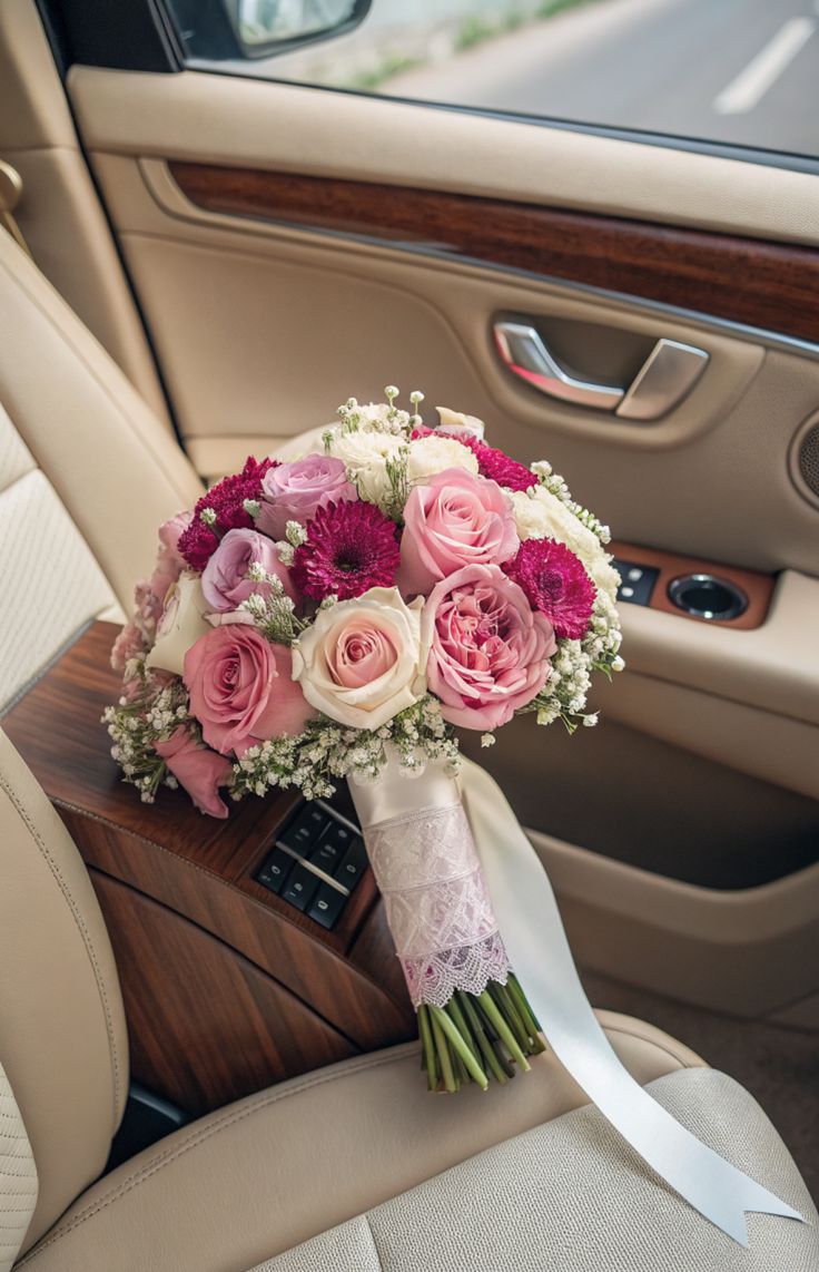 Bó hoa được thiết kế dáng tròn cổ điển, sắp xếp cân đối, từng bông hoa nở vừa độ, tạo chiều sâu và sự mềm mại cho tổng thể. Phần tay cầm quấn ruy băng lụa hồng nhạt cao cấp, vừa chắc tay vừa tăng thêm nét sang trọng, thanh lịch.